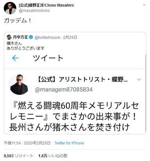 絶対に笑ってはいけない の前フリ 月亭方正 アントニオ猪木メモリアルイベントでビンタくらった蝶野正洋にツイートし話題に 年3月1日 エキサイトニュース